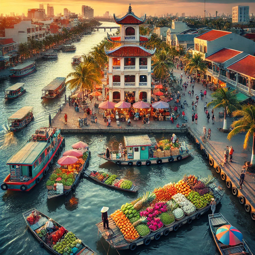 Can Tho, die größte Stadt des Mekong-Deltas, ist das Tor zur Region und bietet Reisenden eine Mischung aus moderner Stadt und traditionellem Delta-Leben. Die Stadt ist bekannt für ihre schwimmenden Märkte, ihre lebendige Promenade am Fluss und die freundlichen Menschen.